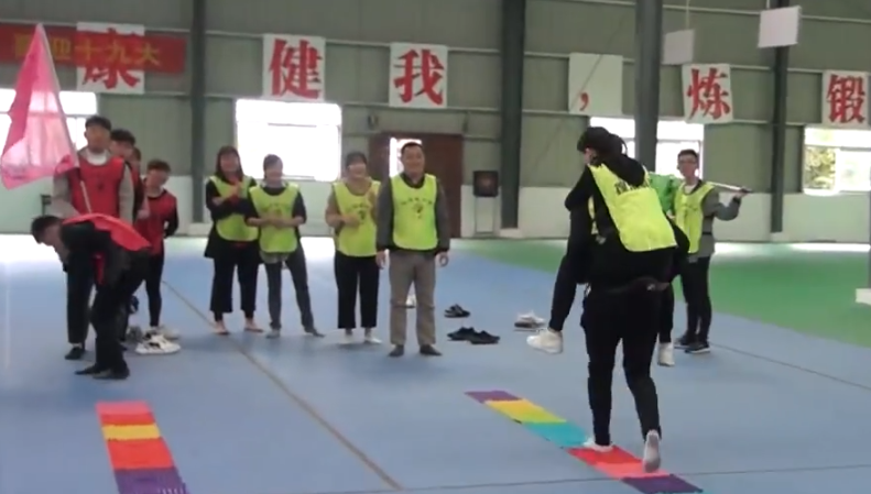 全體員工根據分組,同隊隊友之間協同合作,共同完成各項目,不同隊伍間彼此競爭,既緊張激烈,又充滿歡聲笑語。我們經歷的第一個項目就是指壓板,我們要做的就是穿過指壓板,跳繩10個,然后猜拳贏過大魔王,才能解救公主。項目進行中,全場都是小伙伴疼痛的叫聲,大家都為了自己隊的榮譽拼命奔跑。接下來就是毛毛蟲、射箭、跟真人cs了,項目太多我就不一一描述了,總的來說這一天過得非常充實。
