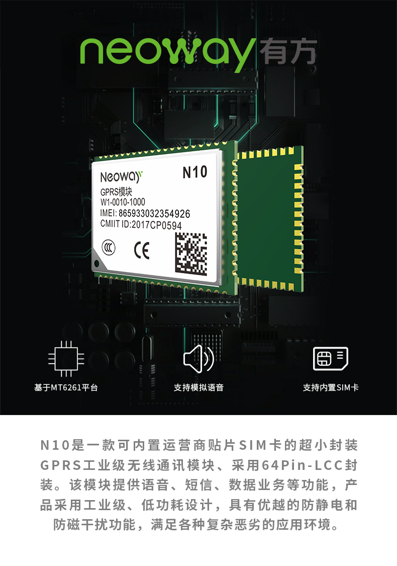 模塊Neoway 有方科技 N10 GSM/GPRS 2G 無線通信模組